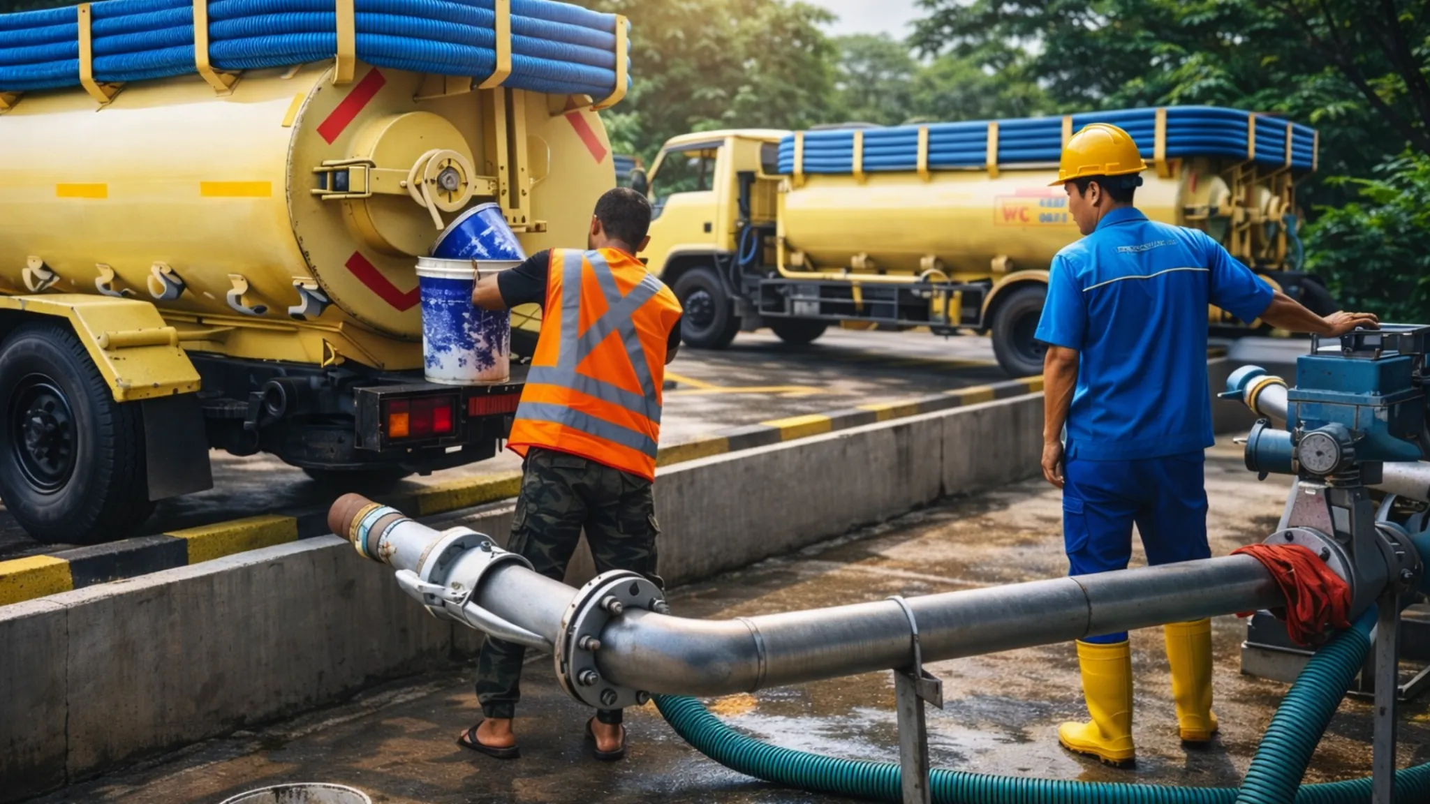 Untuk septic tank penuh, sedot tinja sesuai kondisi lapangan (akses, volume, titik septic). Cocok untuk rumah, kos, ruko, kantor, dan restoran.